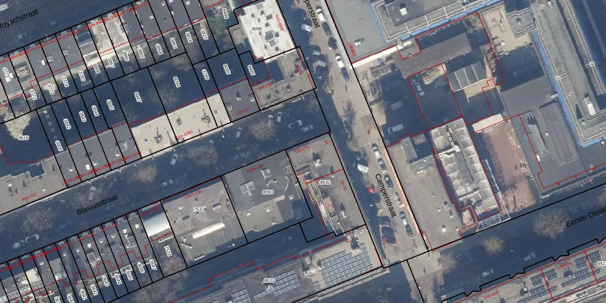 Het perceel waarop Blasiusstraat 168 staat heeft een oppervlakte van 526 m². Dit is een groot perceel. De perceeloppervlakte wordt geregistreerd door het Kadaster. Gedetailleerde informatie over de maten van dit perceel kunt u vinden in het rapport Kadastrale kaart met maatvoering van Blasiusstraat 168.
