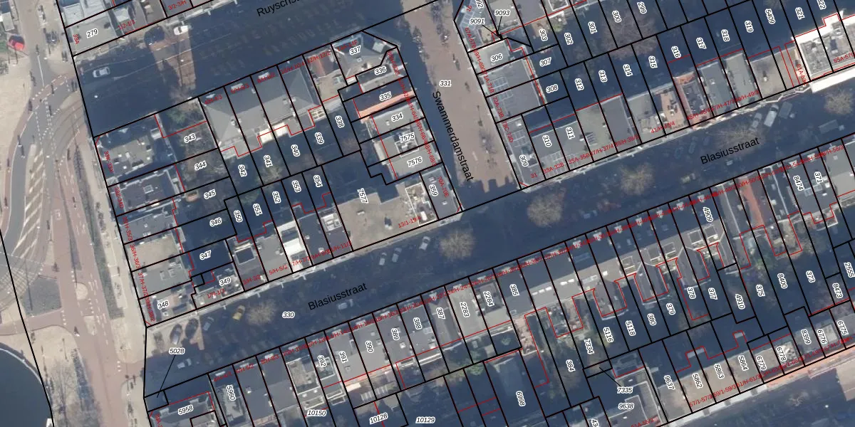 Het perceel waarop Blasiusstraat 19-4 staat heeft een oppervlakte van 363 m². Dit is een groot perceel. De perceeloppervlakte wordt geregistreerd door het Kadaster. Gedetailleerde informatie over de maten van dit perceel kunt u vinden in het rapport Kadastrale kaart met maatvoering van Blasiusstraat 19-4.