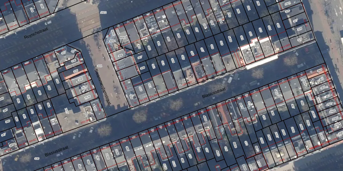 Het perceel waarop Blasiusstraat 39-H staat heeft een oppervlakte van 138 m². Dit is een middelgroot perceel. De perceeloppervlakte wordt geregistreerd door het Kadaster. Gedetailleerde informatie over de maten van dit perceel kunt u vinden in het rapport Kadastrale kaart met maatvoering van Blasiusstraat 39-H.