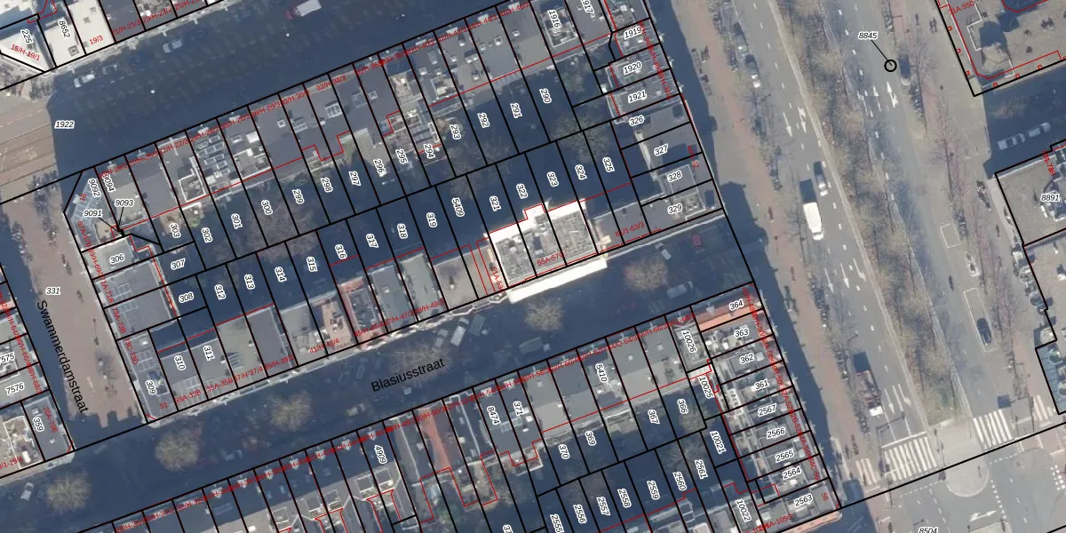 Blasiusstraat 55-B is gelegen op kadastraal perceel ASD15S321. Deze kadastrale aanduiding is uniek en wordt gebruikt door het Kadaster om eigendomsrechten en andere zakelijke rechten vast te leggen. Het perceel maakt onderdeel uit van de kadastrale gemeente Amsterdam.