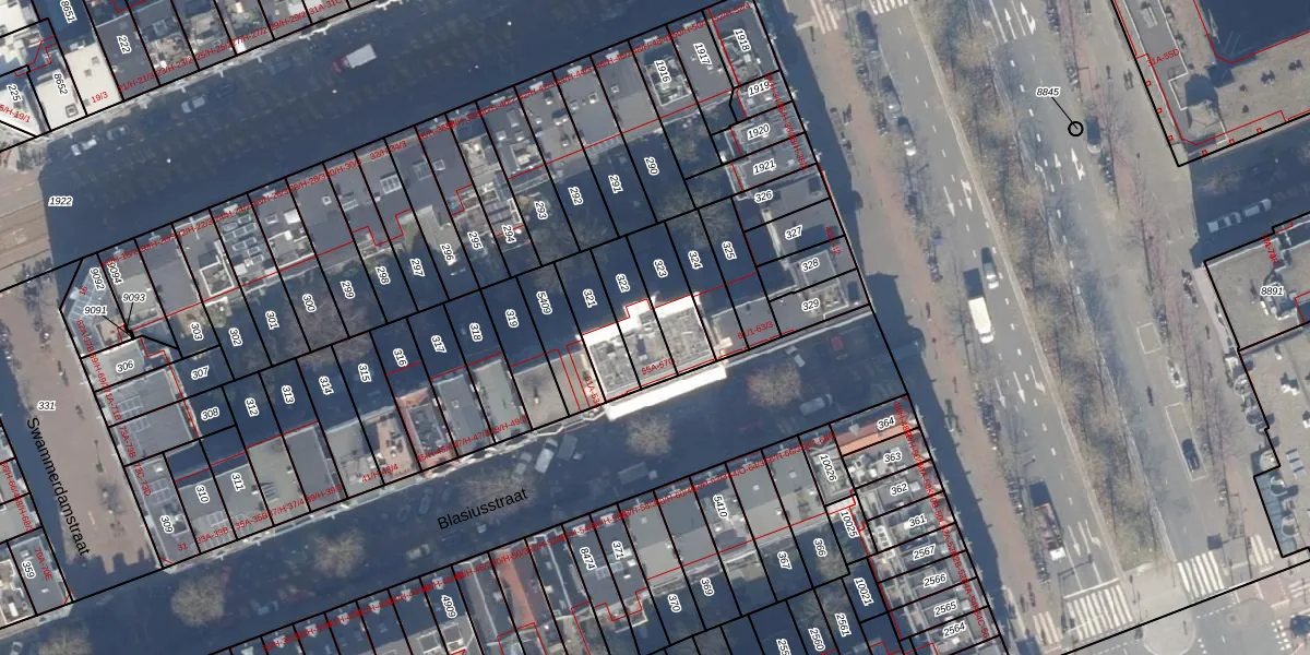 Het adres is gelegen op perceel 322 in de sectie S en de kadastrale gemeente Amsterdam. De kadastrale aanduiding is aldus ASD15-S-322. Het perceel is kleiner dan gemiddeld in Amsterdam. Het perceel is 138 m² groot, terwijl het gemiddelde ligt op 537,06 m². De grootste perceeloppervlakte in de kadastrale gemeente is 14,5 ha. De kleinste oppervlakte bedraagt 0 m². Er zijn 8 adressen aanwezig op het perceel. In de Basisregistratie Kadaster (BRK) werden de grenzen van het perceel geregistreerd op 05-12-2006.