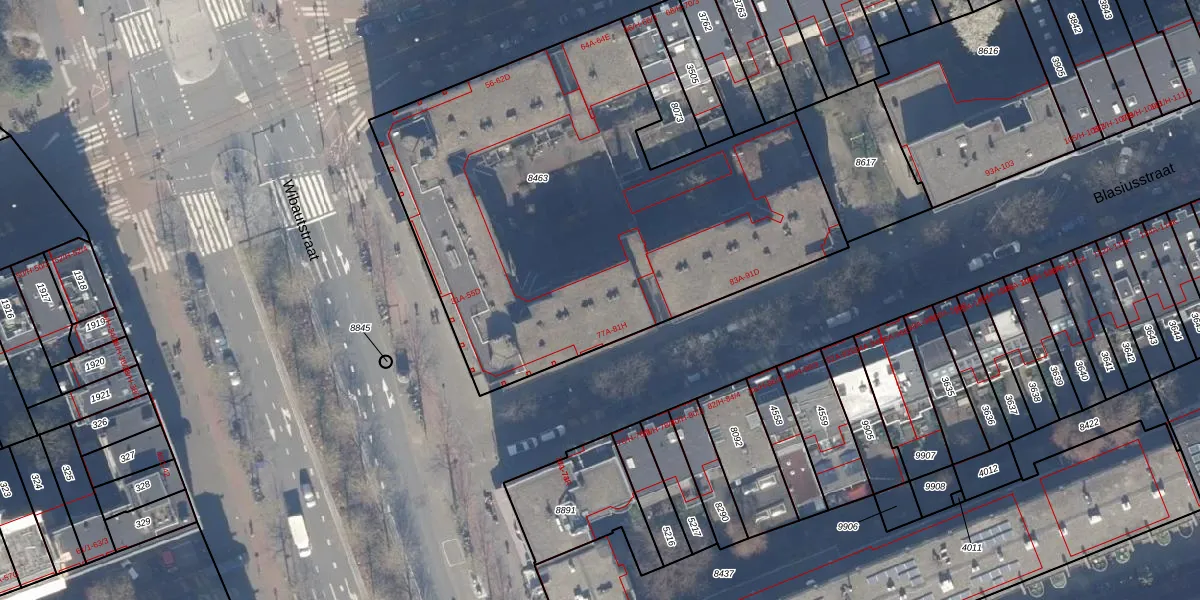 Het adres is gelegen op perceel 8463 in de sectie S en de kadastrale gemeente Amsterdam. De kadastrale aanduiding is aldus ASD15-S-8463. Het perceel is met 2738 m² relatief groot. Het gemiddelde ligt in de kadastrale gemeente Amsterdam op 537,06 m². Het grootste perceel in de kadastrale gemeente is 14,5 ha. Het kleinste perceel heeft een oppervlakte van 0 m². Er zijn 88 adressen aanwezig op het perceel. De huidige grenzen van het perceel zijn digitaal in de Basisregistratie Kadaster (BRK) geregistreerd op 30-11-2006.