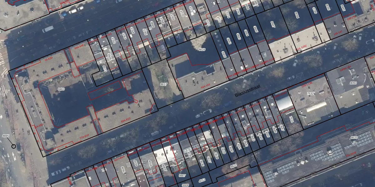 Blasiusstraat 93-B is gelegen op kadastraal perceel ASD15S8616. Deze kadastrale aanduiding is uniek en wordt gebruikt door het Kadaster om eigendomsrechten en andere zakelijke rechten vast te leggen. Het perceel maakt onderdeel uit van de kadastrale gemeente Amsterdam.