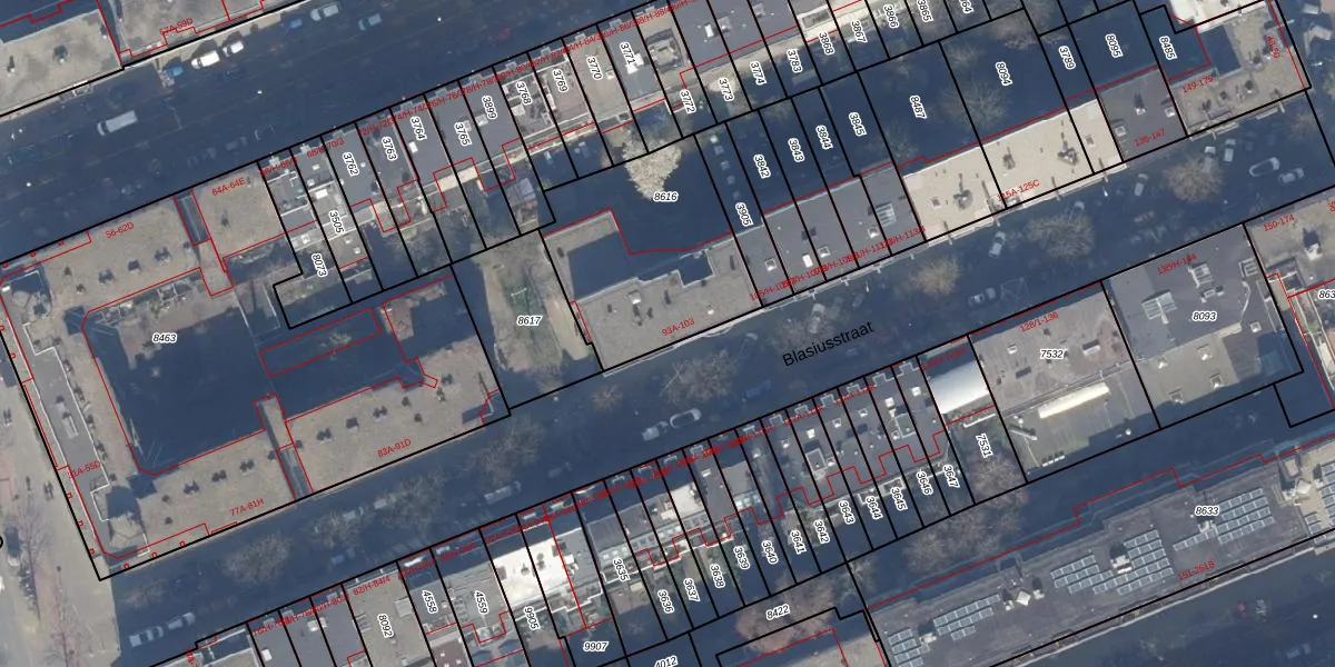 Blasiusstraat 97-B is gelegen op kadastraal perceel ASD15S8616. Deze kadastrale aanduiding is uniek en wordt gebruikt door het Kadaster om eigendomsrechten en andere zakelijke rechten vast te leggen. Het perceel maakt onderdeel uit van de kadastrale gemeente Amsterdam.