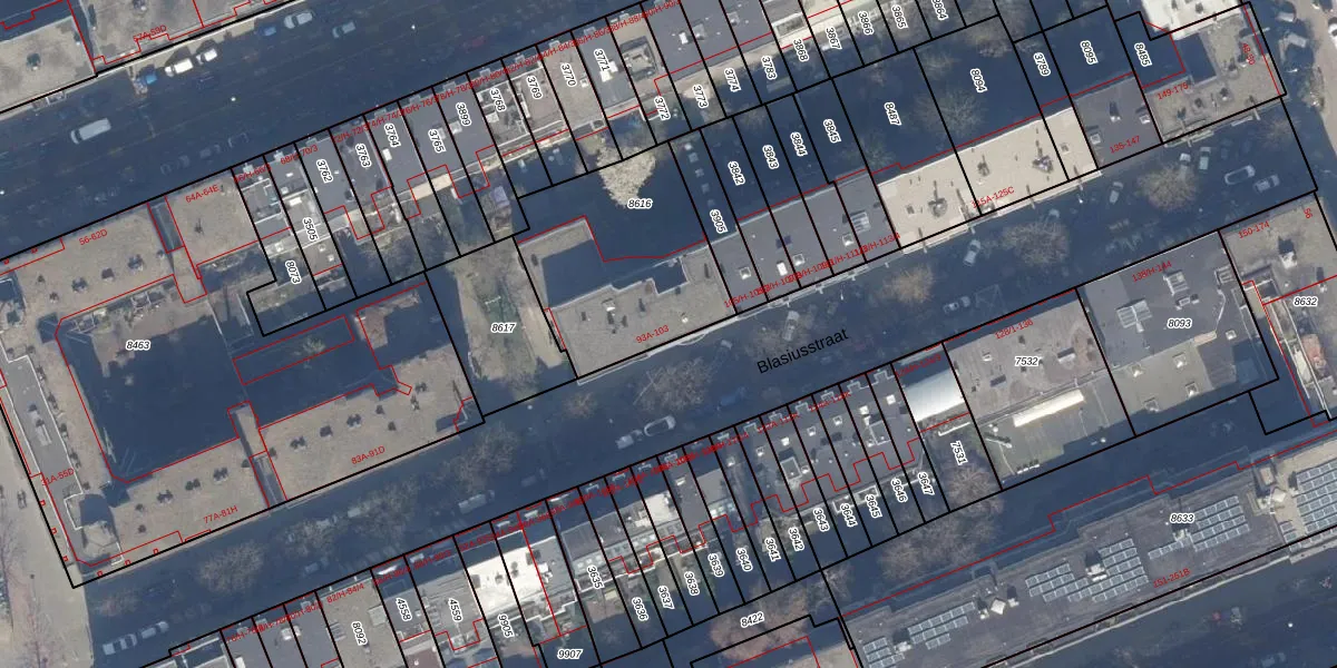 Blasiusstraat 99-A is gelegen op kadastraal perceel ASD15S8616. Deze kadastrale aanduiding is uniek en wordt gebruikt door het Kadaster om eigendomsrechten en andere zakelijke rechten vast te leggen. Het perceel maakt onderdeel uit van de kadastrale gemeente Amsterdam.