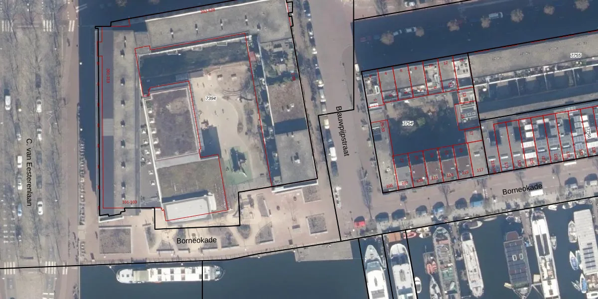 Het adres is gelegen op perceel 7394 in de sectie A en de kadastrale gemeente Amsterdam. De kadastrale aanduiding is aldus ASD02-A-7394. De gemiddelde perceeloppervlakte in de kadastrale gemeente Amsterdam is 2767,13 m². Dit perceel is met zijn 4625 m² dus groter dan gemiddeld. Het kleinste perceel in de kadastrale gemeente is 0 m² groot. De grootste perceeloppervlakte is 14,3 ha. Op het perceel zijn 98 adressen aanwezig. In de Basisregistratie Kadaster (BRK) werden de grenzen van het perceel geregistreerd op 11-10-2006.