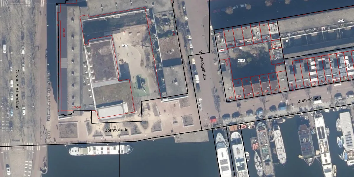Het adres is gelegen op perceel 7394 in de sectie A en de kadastrale gemeente Amsterdam. De kadastrale aanduiding is aldus ASD02-A-7394. De gemiddelde perceeloppervlakte in de kadastrale gemeente Amsterdam is 2767,13 m². Dit perceel is met zijn 4625 m² dus groter dan gemiddeld. Het kleinste perceel in de kadastrale gemeente is 0 m² groot. De grootste perceeloppervlakte is 14,3 ha. Op het perceel zijn 98 adressen aanwezig. De laatste wijziging in het de Basisregistratie Kadaster (BRK) was op 11-10-2006.