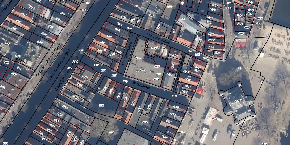 Het perceel waarop Bloedstraat 13-E staat heeft een oppervlakte van 518 m². Dit is een groot perceel. De perceeloppervlakte wordt geregistreerd door het Kadaster. Gedetailleerde informatie over de maten van dit perceel kunt u vinden in het rapport Kadastrale kaart met maatvoering van Bloedstraat 13-E.
