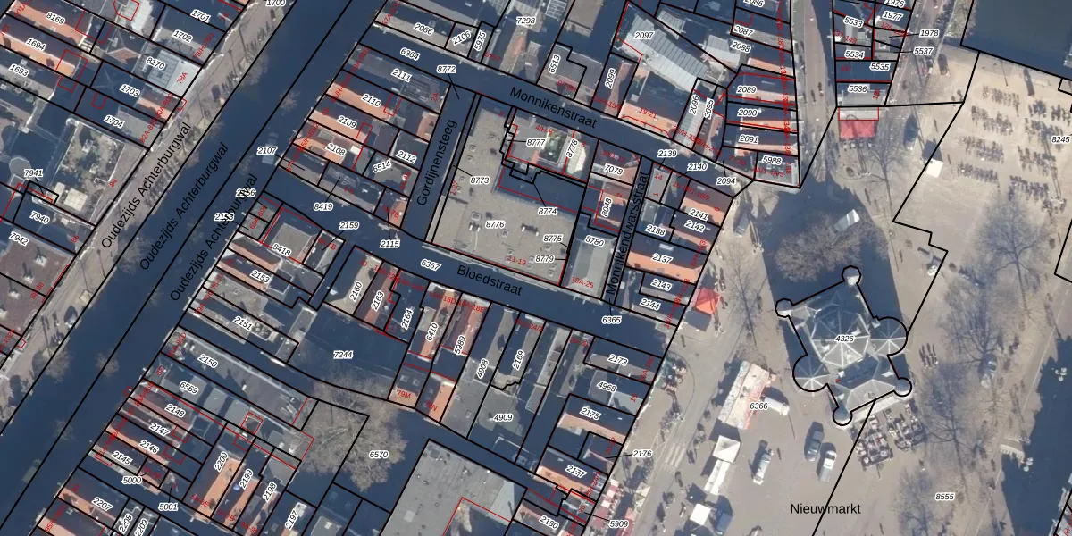 Het perceel waarop Bloedstraat 17-A staat heeft een oppervlakte van 518 m². Dit is een groot perceel. De perceeloppervlakte wordt geregistreerd door het Kadaster. Gedetailleerde informatie over de maten van dit perceel kunt u vinden in het rapport Kadastrale kaart met maatvoering van Bloedstraat 17-A.