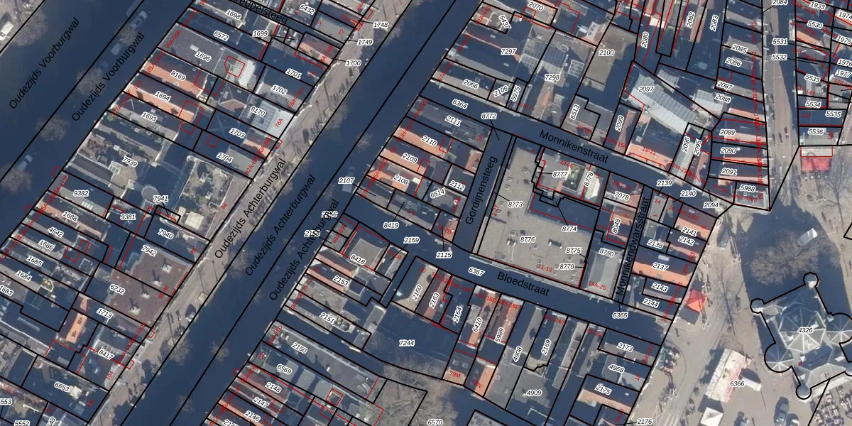 Het perceel waarop Bloedstraat 5 staat heeft een oppervlakte van 62 m². Dit is een klein perceel. De perceeloppervlakte wordt geregistreerd door het Kadaster. Gedetailleerde informatie over de maten van dit perceel kunt u vinden in het rapport Kadastrale kaart met maatvoering van Bloedstraat 5.