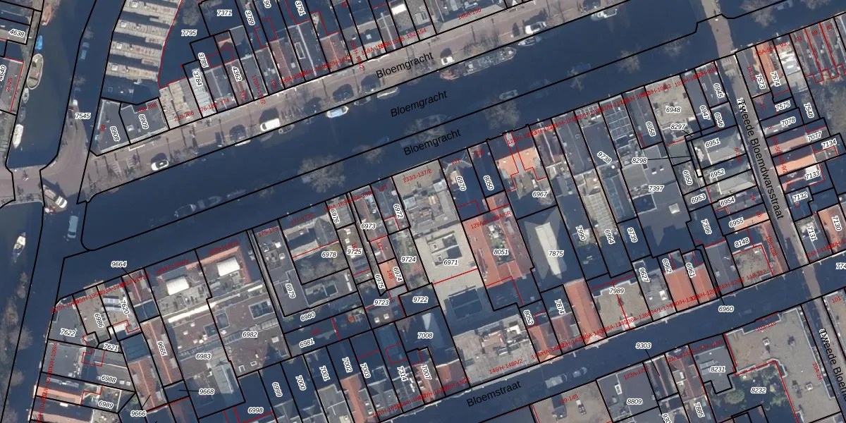 Het perceel waarop Bloemgracht 135-B staat heeft een oppervlakte van 716 m². Dit is een groot perceel. De perceeloppervlakte wordt geregistreerd door het Kadaster. Gedetailleerde informatie over de maten van dit perceel kunt u vinden in het rapport Kadastrale kaart met maatvoering van Bloemgracht 135-B.