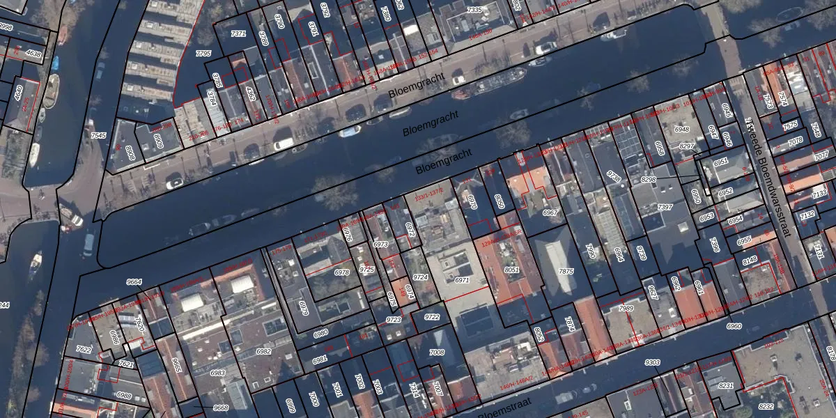 Het perceel waarop Bloemgracht 137-2 staat heeft een oppervlakte van 716 m². Dit is een groot perceel. De perceeloppervlakte wordt geregistreerd door het Kadaster. Gedetailleerde informatie over de maten van dit perceel kunt u vinden in het rapport Kadastrale kaart met maatvoering van Bloemgracht 137-2.