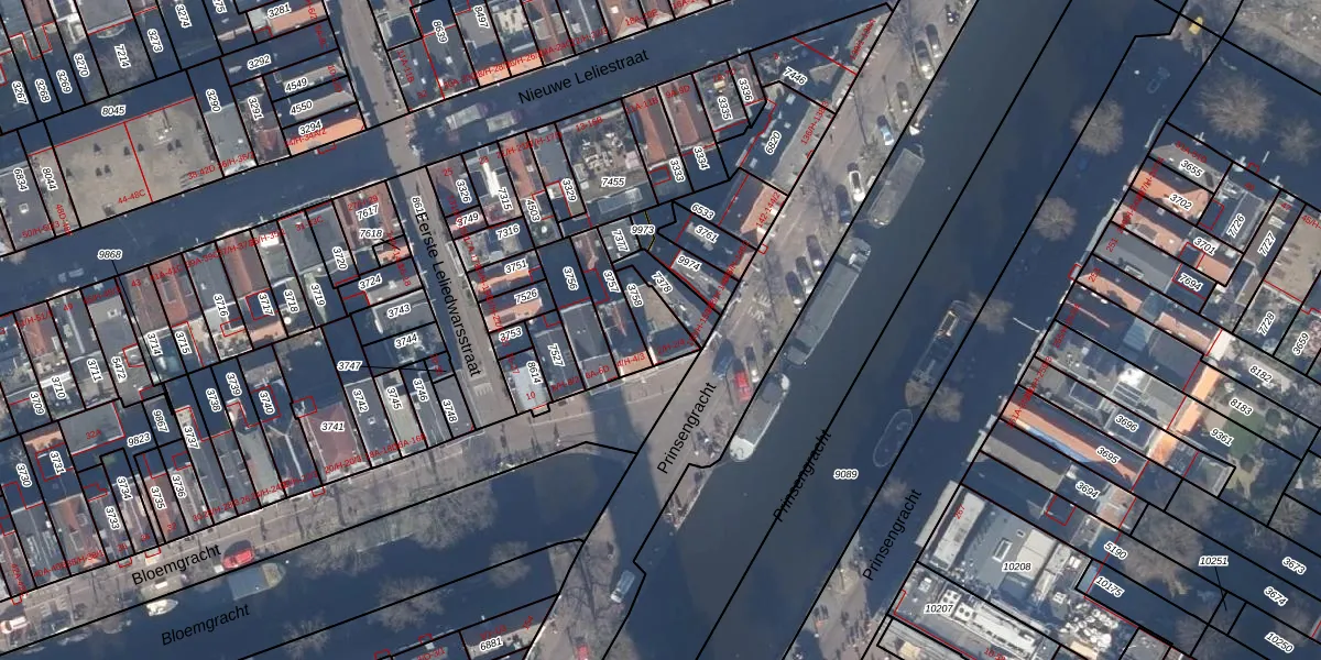 Het perceel waarop Bloemgracht 2-4 staat heeft een oppervlakte van 82 m². Dit is een klein perceel. De perceeloppervlakte wordt geregistreerd door het Kadaster. Gedetailleerde informatie over de maten van dit perceel kunt u vinden in het rapport Kadastrale kaart met maatvoering van Bloemgracht 2-4.