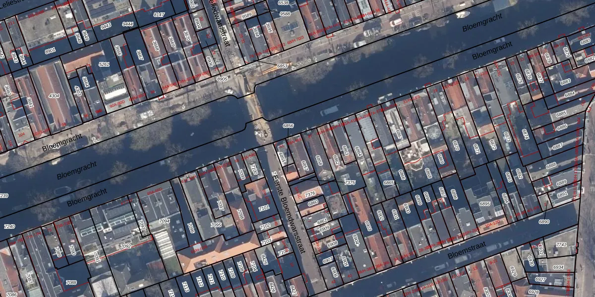 Het perceel waarop Bloemgracht 49-D staat heeft een oppervlakte van 75 m². Dit is een klein perceel. De perceeloppervlakte wordt geregistreerd door het Kadaster. Gedetailleerde informatie over de maten van dit perceel kunt u vinden in het rapport Kadastrale kaart met maatvoering van Bloemgracht 49-D.