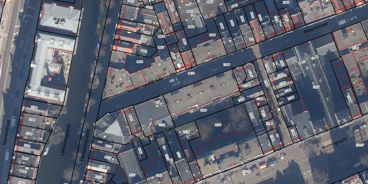 Bloemstraat 175-A is gelegen op kadastraal perceel ASD08L8149. Deze kadastrale aanduiding is uniek en wordt gebruikt door het Kadaster om eigendomsrechten en andere zakelijke rechten vast te leggen. Het perceel maakt onderdeel uit van de kadastrale gemeente Amsterdam.