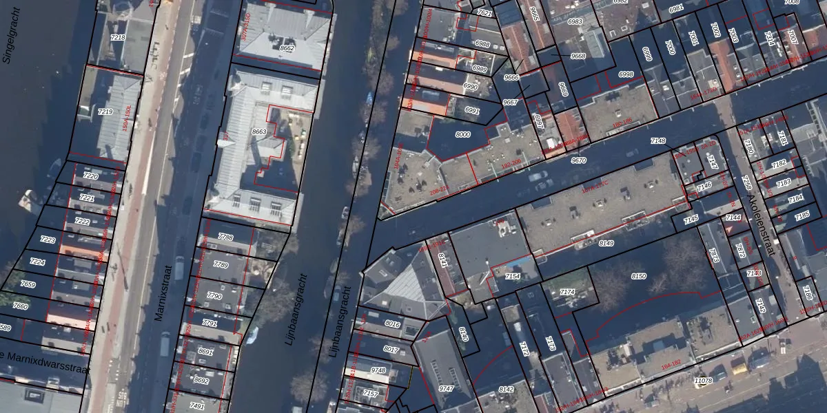 Het adres is gelegen op perceel 8000 in de sectie L en de kadastrale gemeente Amsterdam. De kadastrale aanduiding is aldus ASD08-L-8000. De oppervlakte van het perceel is 731 m². Dat is groter dan gemiddeld in Amsterdam, waar de gemiddelde perceeloppervlakte op 202,23 m² ligt. De grootste perceeloppervlakte in de kadastrale gemeente is 3,3 ha. De kleinste oppervlakte bedraagt 0 m². Op het perceel zijn 26 adressen aanwezig. De laatste wijziging in het de Basisregistratie Kadaster (BRK) was op 23-09-2014.