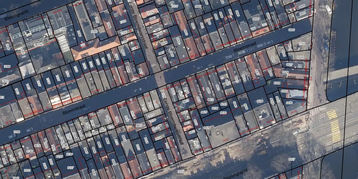 Het perceel waarop Bloemstraat 31-C staat heeft een oppervlakte van 43 m². Dit is een klein perceel. De perceeloppervlakte wordt geregistreerd door het Kadaster. Gedetailleerde informatie over de maten van dit perceel kunt u vinden in het rapport Kadastrale kaart met maatvoering van Bloemstraat 31-C.