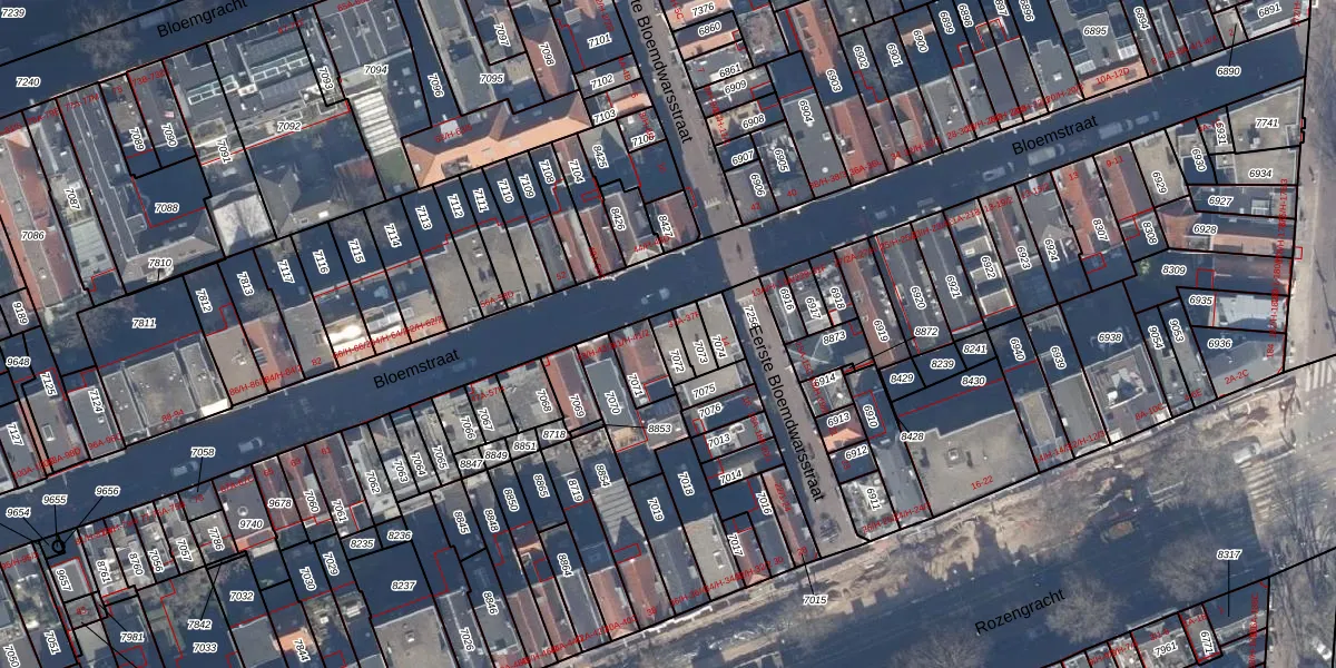 Het perceel waarop Bloemstraat 37-C staat heeft een oppervlakte van 39 m². Dit is een klein perceel. De perceeloppervlakte wordt geregistreerd door het Kadaster. Gedetailleerde informatie over de maten van dit perceel kunt u vinden in het rapport Kadastrale kaart met maatvoering van Bloemstraat 37-C.