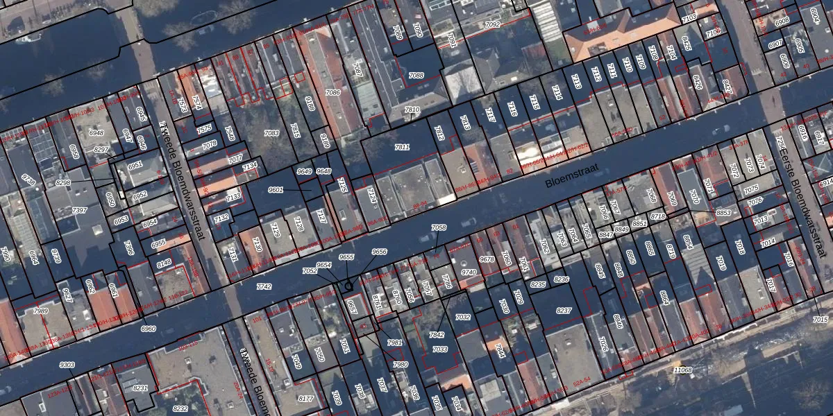Het perceel waarop Bloemstraat 92-A staat heeft een oppervlakte van 359 m². Dit is een groot perceel. De perceeloppervlakte wordt geregistreerd door het Kadaster. Gedetailleerde informatie over de maten van dit perceel kunt u vinden in het rapport Kadastrale kaart met maatvoering van Bloemstraat 92-A.