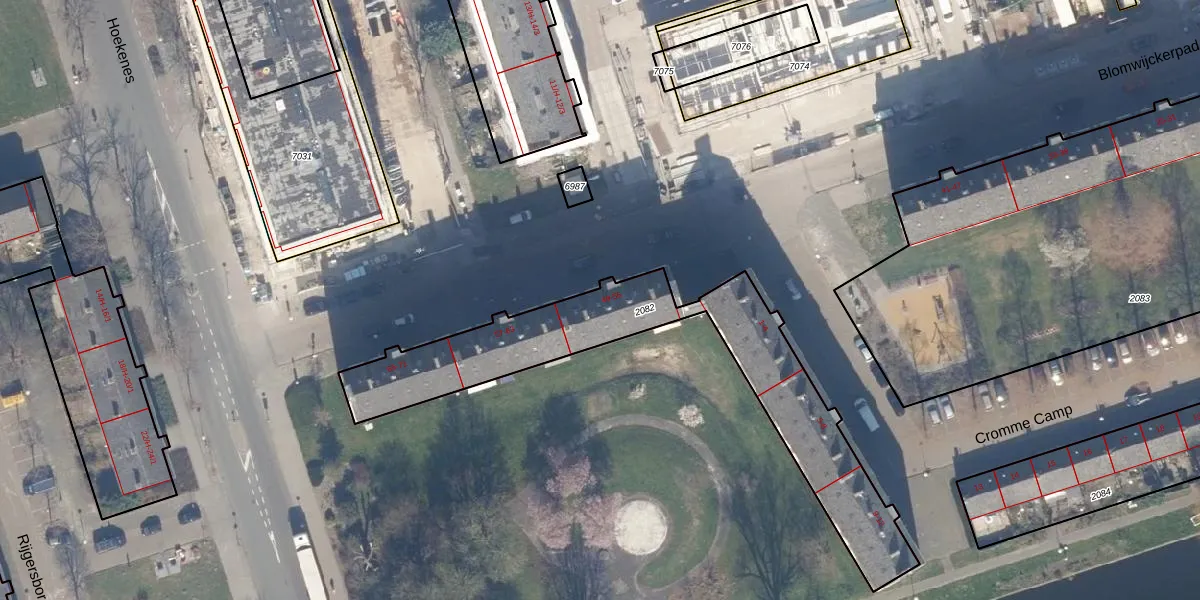 Het perceel waarop Blomwijckerpad 53-1 staat heeft een oppervlakte van 1054 m². Dit is een zeer groot perceel. De perceeloppervlakte wordt geregistreerd door het Kadaster. Gedetailleerde informatie over de maten van dit perceel kunt u vinden in het rapport Kadastrale kaart met maatvoering van Blomwijckerpad 53-1.