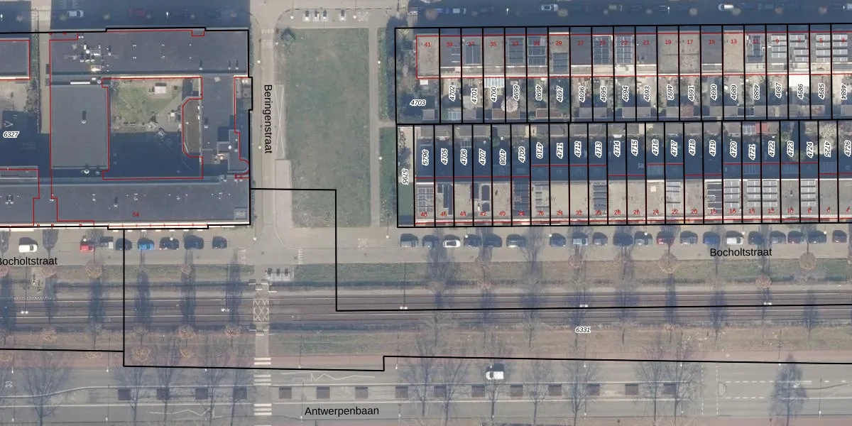 Gebruik de zoekbalk of klik op een perceel voor informatie over de adressen binnen dit perceel.