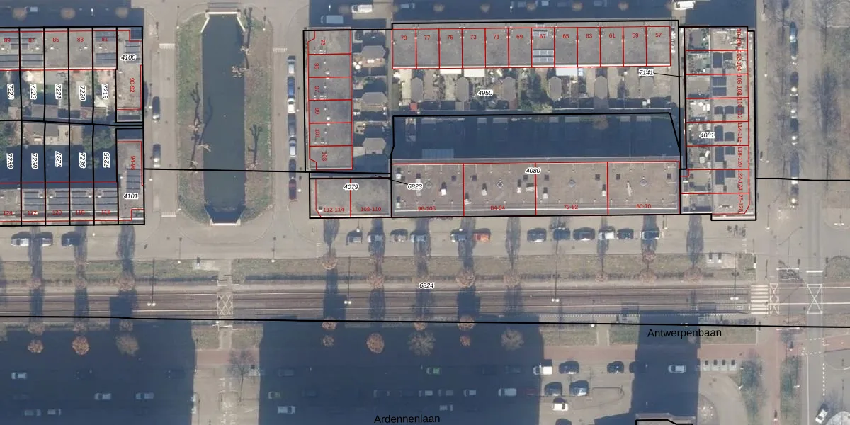 Het perceel waarop Bocholtstraat 96 staat heeft een oppervlakte van 1599 m². Dit is een zeer groot perceel. De perceeloppervlakte wordt geregistreerd door het Kadaster. Gedetailleerde informatie over de maten van dit perceel kunt u vinden in het rapport Kadastrale kaart met maatvoering van Bocholtstraat 96.