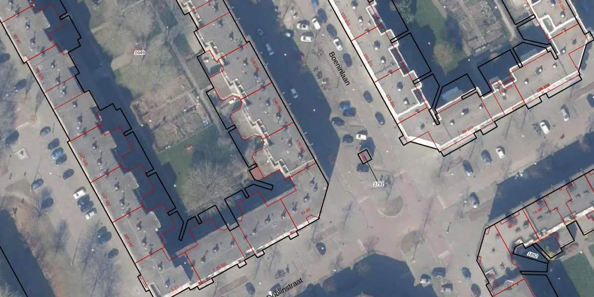 Het perceel waarop Boeninlaan 176 staat heeft een oppervlakte van 7733 m². Dit is een zeer groot perceel. De perceeloppervlakte wordt geregistreerd door het Kadaster. Gedetailleerde informatie over de maten van dit perceel kunt u vinden in het rapport Kadastrale kaart met maatvoering van Boeninlaan 176.