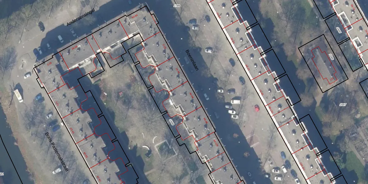 Het perceel waarop Boeninlaan 48 staat heeft een oppervlakte van 7733 m². Dit is een zeer groot perceel. De perceeloppervlakte wordt geregistreerd door het Kadaster. Gedetailleerde informatie over de maten van dit perceel kunt u vinden in het rapport Kadastrale kaart met maatvoering van Boeninlaan 48.
