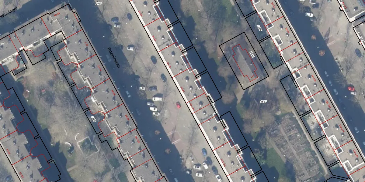 Het perceel waarop Boeninlaan 87 staat heeft een oppervlakte van 7735 m². Dit is een zeer groot perceel. De perceeloppervlakte wordt geregistreerd door het Kadaster. Gedetailleerde informatie over de maten van dit perceel kunt u vinden in het rapport Kadastrale kaart met maatvoering van Boeninlaan 87.