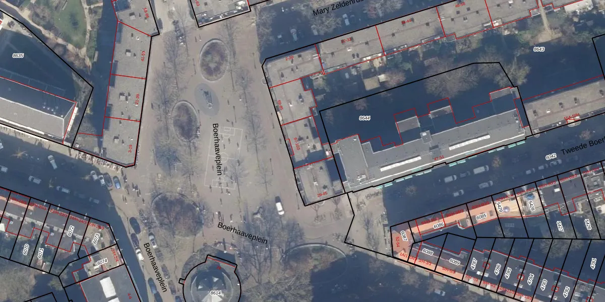 Het perceel waarop Boerhaaveplein 97 staat heeft een oppervlakte van 5522 m². Dit is een zeer groot perceel. De perceeloppervlakte wordt geregistreerd door het Kadaster. Gedetailleerde informatie over de maten van dit perceel kunt u vinden in het rapport Kadastrale kaart met maatvoering van Boerhaaveplein 97.