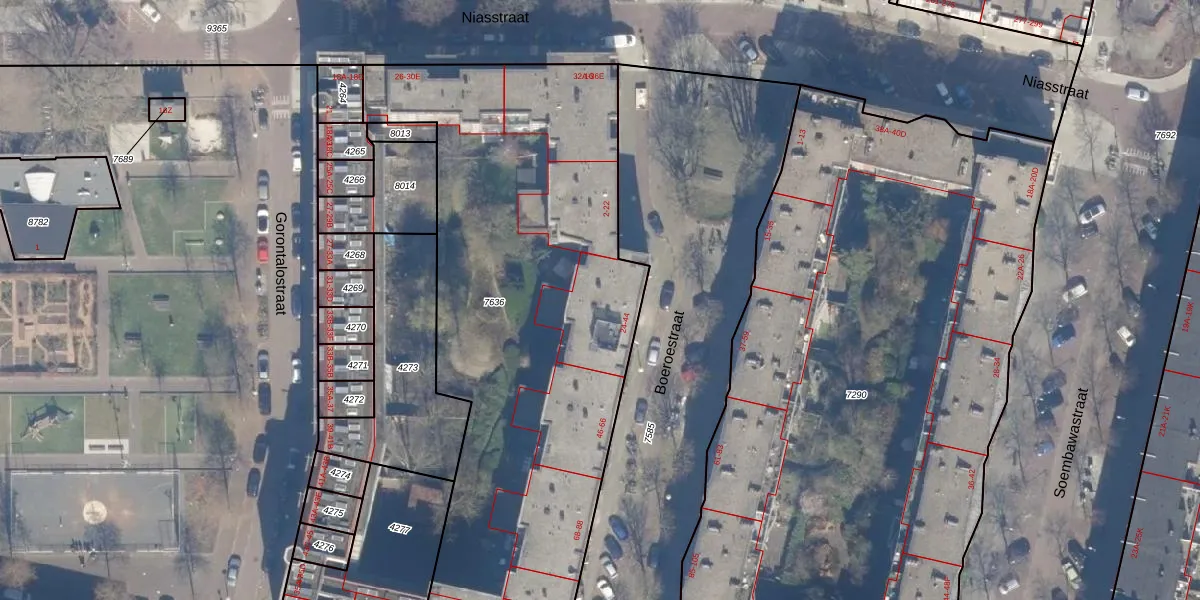 Boeroestraat 32 is gelegen op kadastraal perceel ASD19W7636. Deze kadastrale aanduiding is uniek en wordt gebruikt door het Kadaster om eigendomsrechten en andere zakelijke rechten vast te leggen. Het perceel maakt onderdeel uit van de kadastrale gemeente Amsterdam.
