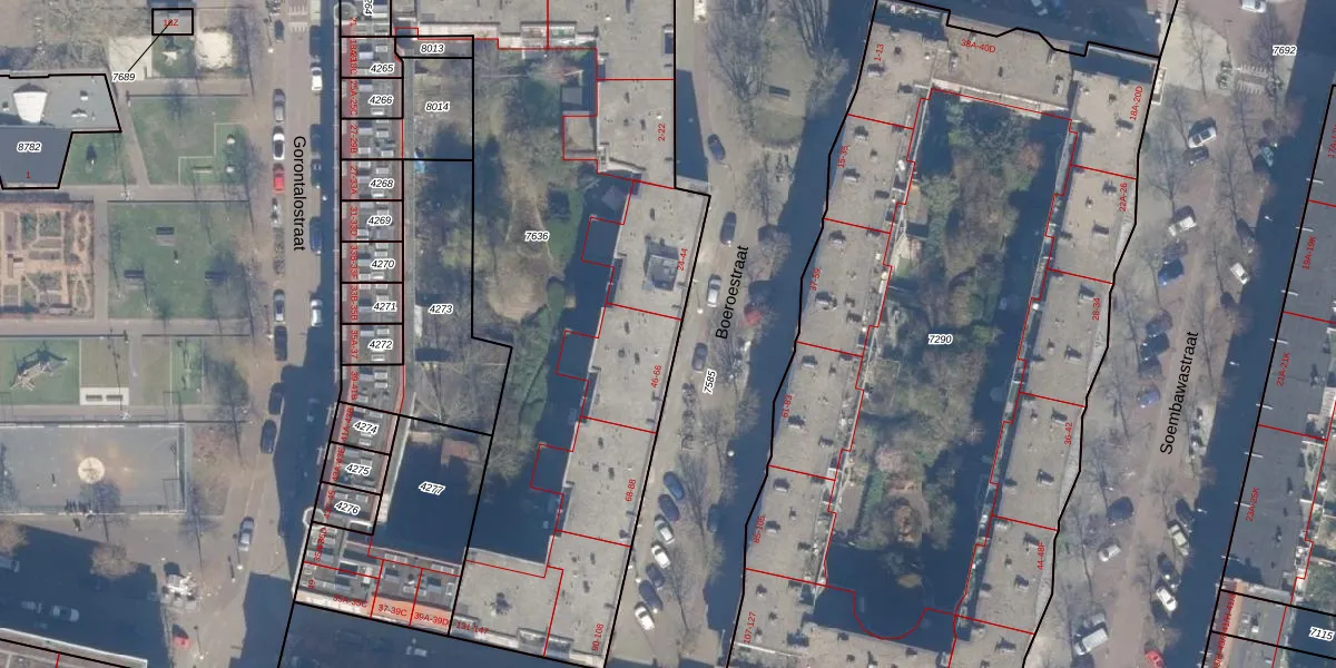 Het perceel waarop Boeroestraat 52 staat heeft een oppervlakte van 2958 m². Dit is een zeer groot perceel. De perceeloppervlakte wordt geregistreerd door het Kadaster. Gedetailleerde informatie over de maten van dit perceel kunt u vinden in het rapport Kadastrale kaart met maatvoering van Boeroestraat 52.