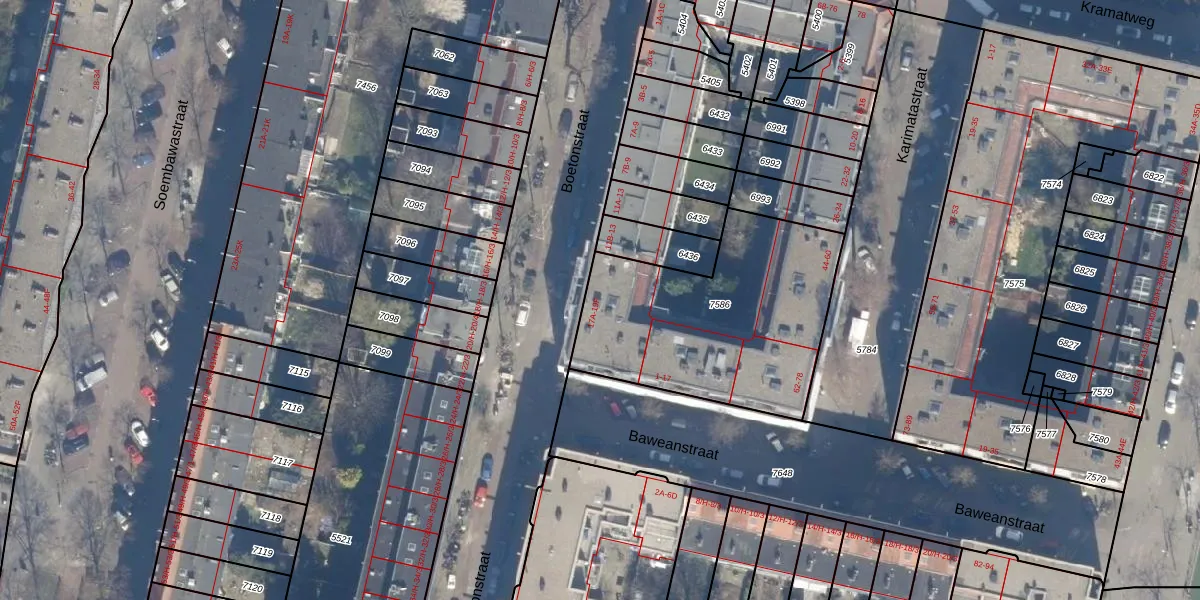 Boetonstraat 17-B is gelegen op kadastraal perceel ASD19W7586. Deze kadastrale aanduiding is uniek en wordt gebruikt door het Kadaster om eigendomsrechten en andere zakelijke rechten vast te leggen. Het perceel maakt onderdeel uit van de kadastrale gemeente Amsterdam.