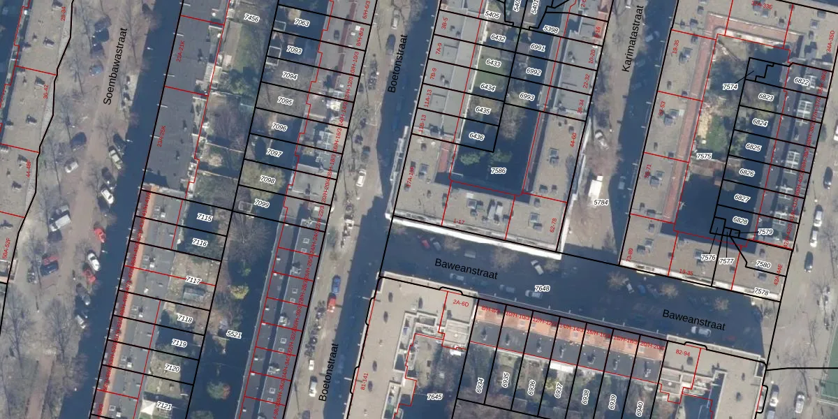 Het perceel waarop Boetonstraat 19-F staat heeft een oppervlakte van 1041 m². Dit is een zeer groot perceel. De perceeloppervlakte wordt geregistreerd door het Kadaster. Gedetailleerde informatie over de maten van dit perceel kunt u vinden in het rapport Kadastrale kaart met maatvoering van Boetonstraat 19-F.