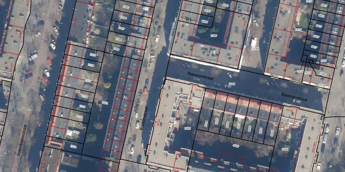 Boetonstraat 87 is gelegen op kadastraal perceel ASD19W7645. Deze kadastrale aanduiding is uniek en wordt gebruikt door het Kadaster om eigendomsrechten en andere zakelijke rechten vast te leggen. Het perceel maakt onderdeel uit van de kadastrale gemeente Amsterdam.