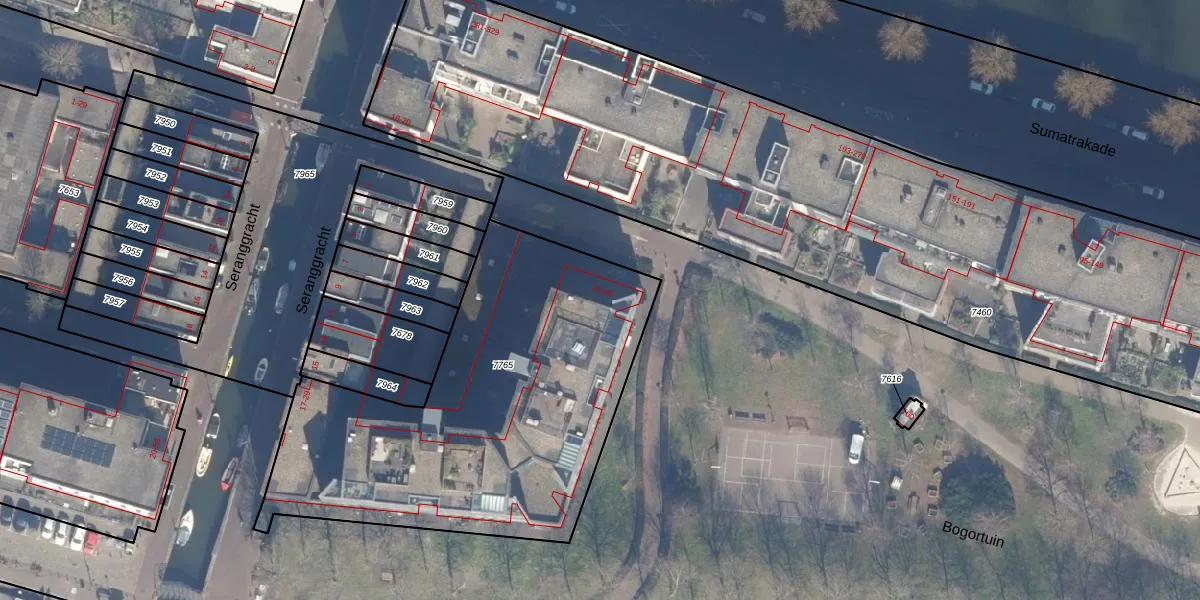 Het adres ligt op het perceel ASD02-A-7765, dat zich in de kadastrale gemeente Amsterdam bevindt. Het perceel is kleiner dan gemiddeld in Amsterdam. Het perceel is 1994 m² groot, terwijl het gemiddelde ligt op 2767,13 m². De grootste perceeloppervlakte in de kadastrale gemeente is 14,3 ha. De kleinste oppervlakte bedraagt 0 m². Op het perceel zijn 46 adressen aanwezig. In de Basisregistratie Kadaster (BRK) werden de grenzen van het perceel geregistreerd op 09-02-2006.