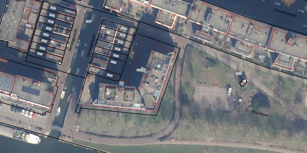 Het adres ligt op het perceel ASD02-A-7765, dat zich in de kadastrale gemeente Amsterdam bevindt. Het perceel is kleiner dan gemiddeld in Amsterdam. Het perceel is 1994 m² groot, terwijl het gemiddelde ligt op 2767,13 m². Het grootste perceel in de kadastrale gemeente is 14,3 ha. Het kleinste perceel heeft een oppervlakte van 0 m². Er zijn 46 adressen aanwezig op het perceel. De laatste wijziging in het de Basisregistratie Kadaster (BRK) was op 09-02-2006.