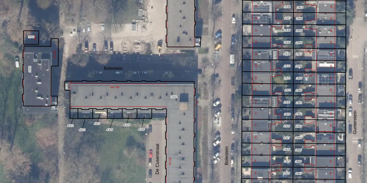 Het perceel waarop Bolestein 784 staat heeft een oppervlakte van 1856 m². Dit is een zeer groot perceel. De perceeloppervlakte wordt geregistreerd door het Kadaster. Gedetailleerde informatie over de maten van dit perceel kunt u vinden in het rapport Kadastrale kaart met maatvoering van Bolestein 784.