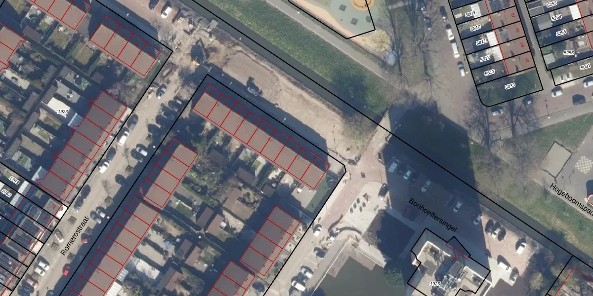 Het perceel waarop Bonhoeffersingel 32 staat heeft een oppervlakte van 8241 m². Dit is een zeer groot perceel. De perceeloppervlakte wordt geregistreerd door het Kadaster. Gedetailleerde informatie over de maten van dit perceel kunt u vinden in het rapport Kadastrale kaart met maatvoering van Bonhoeffersingel 32.