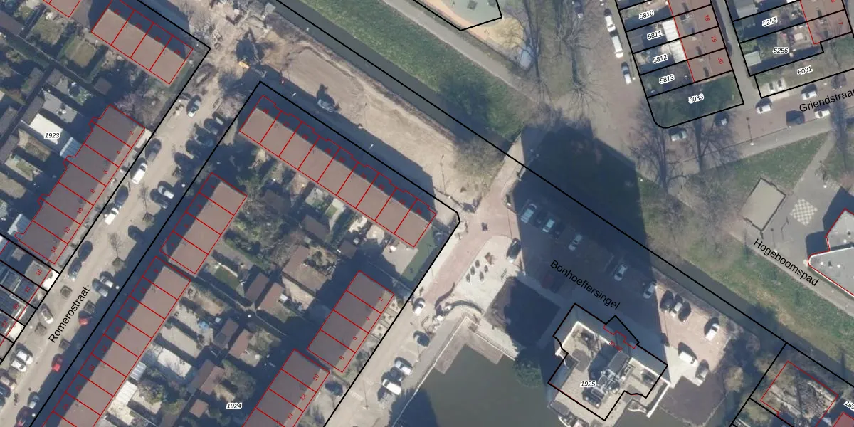Het perceel waarop Bonhoeffersingel 34 staat heeft een oppervlakte van 8241 m². Dit is een zeer groot perceel. De perceeloppervlakte wordt geregistreerd door het Kadaster. Gedetailleerde informatie over de maten van dit perceel kunt u vinden in het rapport Kadastrale kaart met maatvoering van Bonhoeffersingel 34.