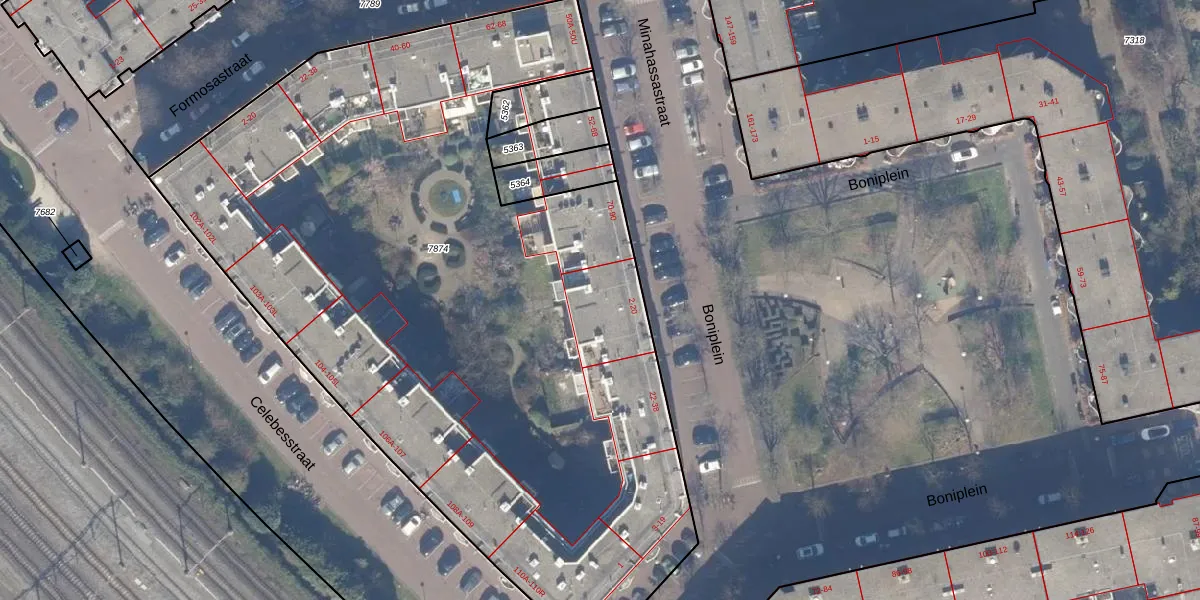 Het perceel waarop Boniplein 8 staat heeft een oppervlakte van 5099 m². Dit is een zeer groot perceel. De perceeloppervlakte wordt geregistreerd door het Kadaster. Gedetailleerde informatie over de maten van dit perceel kunt u vinden in het rapport Kadastrale kaart met maatvoering van Boniplein 8.