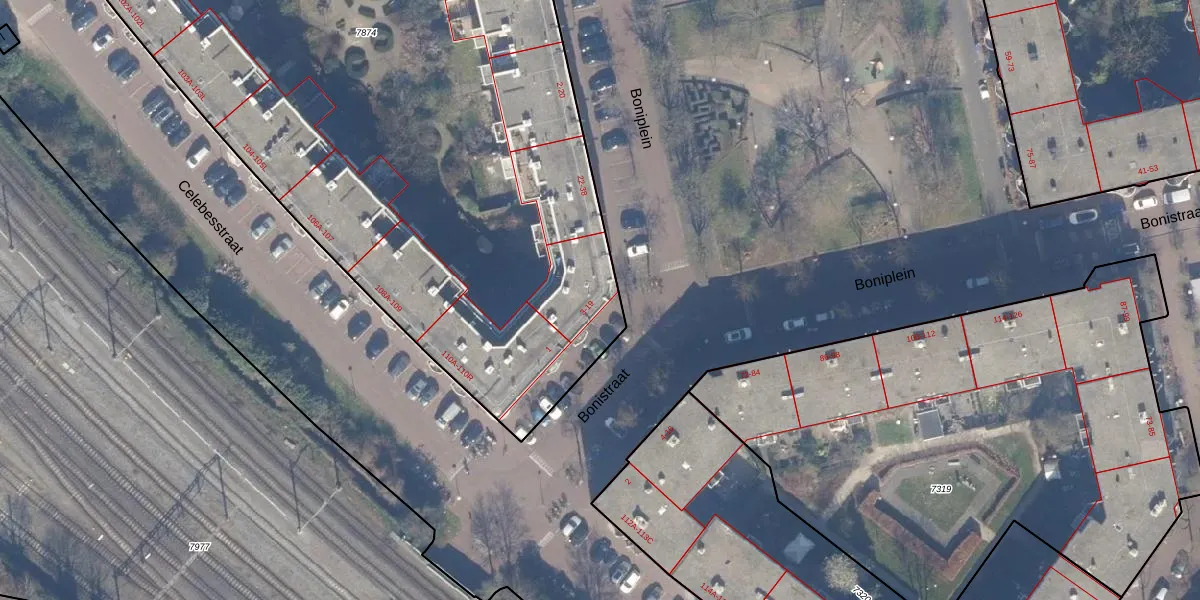 Het perceel waarop Bonistraat 13 staat heeft een oppervlakte van 5099 m². Dit is een zeer groot perceel. De perceeloppervlakte wordt geregistreerd door het Kadaster. Gedetailleerde informatie over de maten van dit perceel kunt u vinden in het rapport Kadastrale kaart met maatvoering van Bonistraat 13.