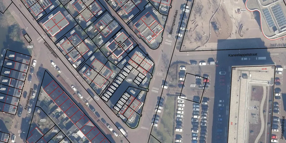 Gebruik de zoekbalk of klik op een perceel voor informatie over de adressen binnen dit perceel.