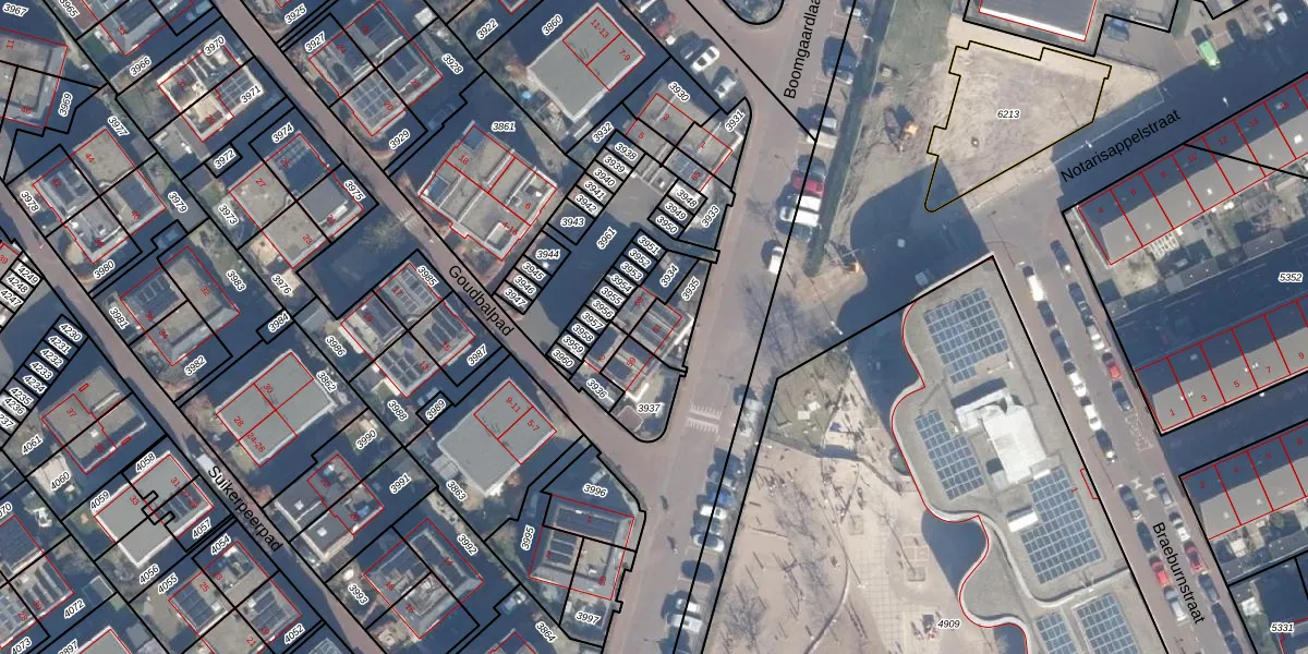 Gebruik de zoekbalk of klik op een perceel voor informatie over de adressen binnen dit perceel.