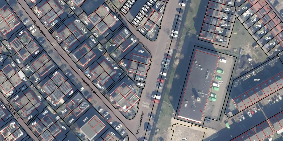 Boomgaardlaan 71 is gelegen op kadastraal perceel ASD28AH4102. Deze kadastrale aanduiding is uniek en wordt gebruikt door het Kadaster om eigendomsrechten en andere zakelijke rechten vast te leggen. Het perceel maakt onderdeel uit van de kadastrale gemeente Amsterdam.