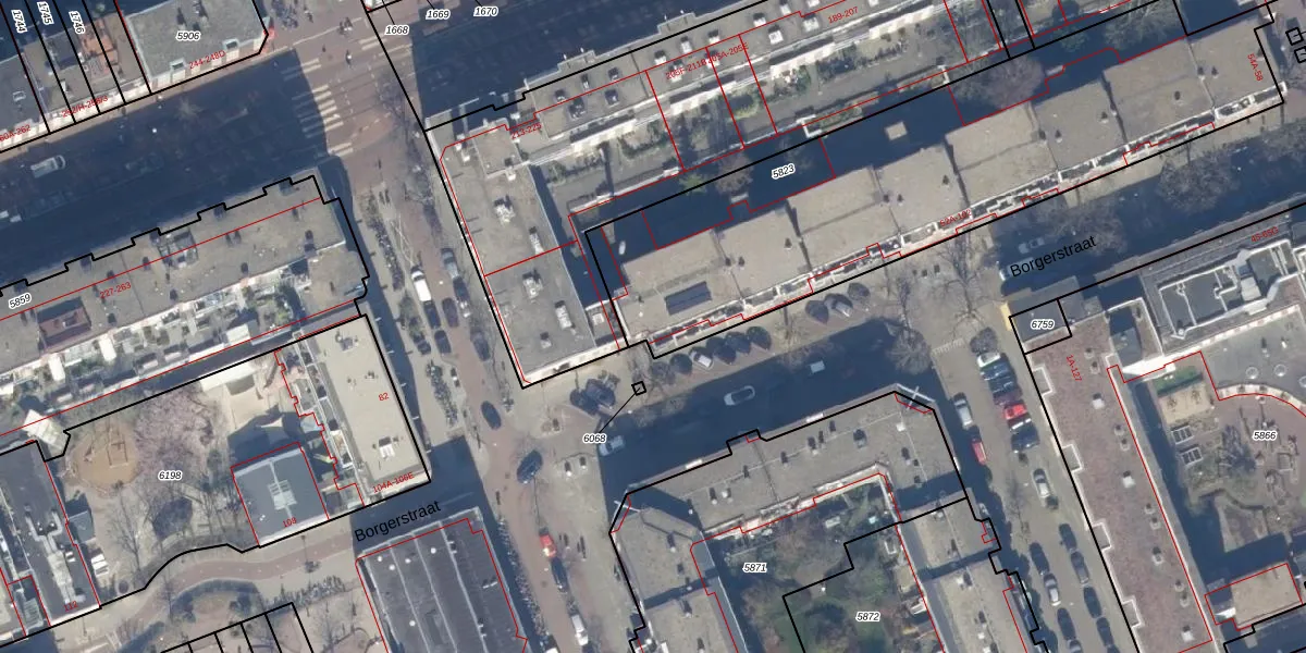 Borgerstraat 100 is gelegen op kadastraal perceel ASD16T5823. Deze kadastrale aanduiding is uniek en wordt gebruikt door het Kadaster om eigendomsrechten en andere zakelijke rechten vast te leggen. Het perceel maakt onderdeel uit van de kadastrale gemeente Amsterdam.