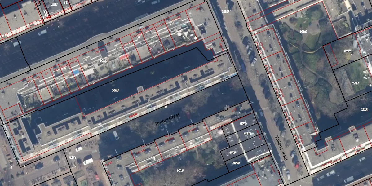 Borgerstraat 12-A is gelegen op kadastraal perceel ASD13Q7489. Deze kadastrale aanduiding is uniek en wordt gebruikt door het Kadaster om eigendomsrechten en andere zakelijke rechten vast te leggen. Het perceel maakt onderdeel uit van de kadastrale gemeente Amsterdam.