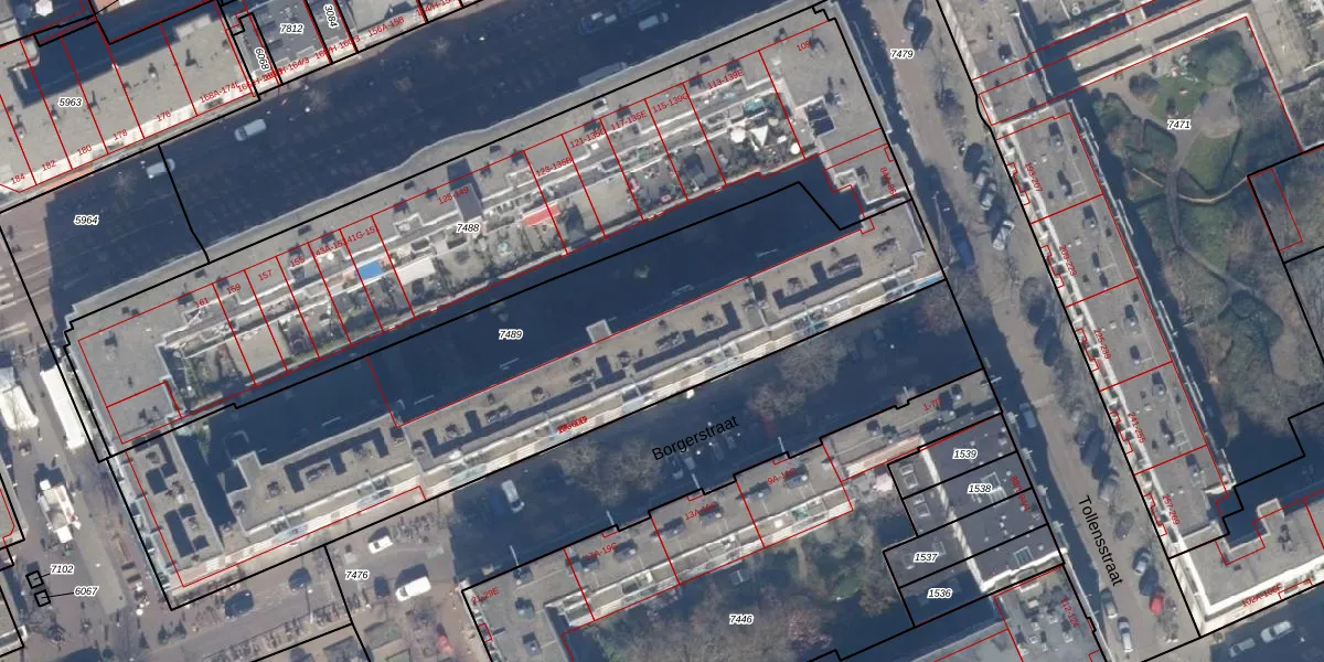 Borgerstraat 20-A is gelegen op kadastraal perceel ASD13Q7489. Deze kadastrale aanduiding is uniek en wordt gebruikt door het Kadaster om eigendomsrechten en andere zakelijke rechten vast te leggen. Het perceel maakt onderdeel uit van de kadastrale gemeente Amsterdam.