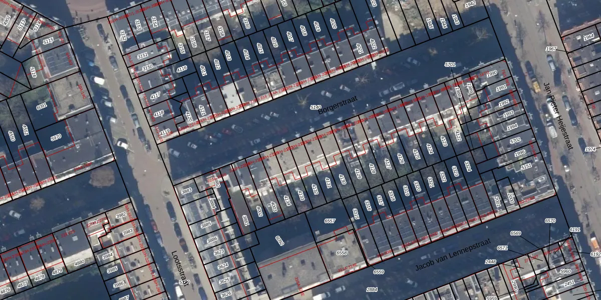 Het adres is gelegen op perceel 4132 in de sectie T en de kadastrale gemeente Amsterdam. De kadastrale aanduiding is aldus ASD16-T-4132. Het perceel is 120 m² groot. Dat is kleiner dan de gemiddelde perceeloppervlakte in Amsterdam, dat op 245,33 m² ligt. Het grootste perceel in de kadastrale gemeente is 3,3 ha. Het kleinste perceel heeft een oppervlakte van 0 m². Er zijn 4 adressen aanwezig op het perceel. De huidige grenzen van het perceel zijn digitaal in de Basisregistratie Kadaster (BRK) geregistreerd op 10-01-2007.