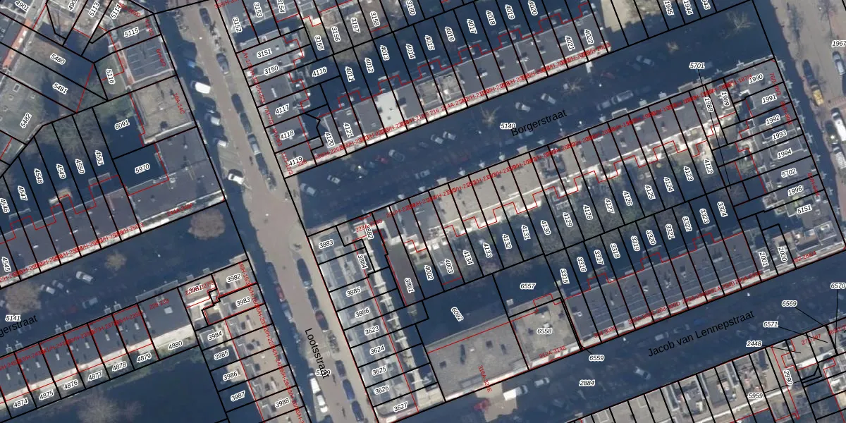 Het adres is gelegen op perceel 4003 in de sectie T en de kadastrale gemeente Amsterdam. De kadastrale aanduiding is aldus ASD16-T-4003. Het perceel is 120 m² groot. Dat is kleiner dan de gemiddelde perceeloppervlakte in Amsterdam, dat op 245,33 m² ligt. Het kleinste perceel in de kadastrale gemeente is 0 m² groot. De grootste perceeloppervlakte is 3,3 ha. Op het perceel liggen in totaal 5 adressen. De huidige grenzen van het perceel zijn digitaal in de Basisregistratie Kadaster (BRK) geregistreerd op 10-01-2007.